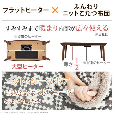 こたつ テーブル 長方形 ソファで使えるフラットヒーターこたつ〔ブエノ〕 90x50cm +北欧柄ふんわりニットこたつ布団 2点セット セット 布団 コタツ 継ぎ脚 継脚 高さ調節 ウォールナット 木製 こたつ布団